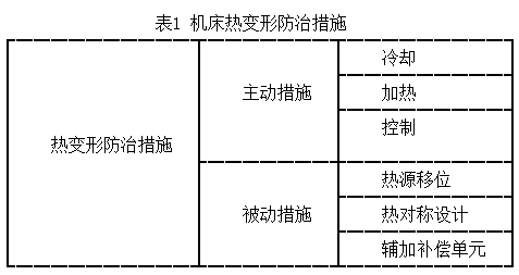 陶瓷磨床的剛度一直是人們關(guān)注的重點。引起機(jī)床結(jié)構(gòu)變形的主要因素包括熱變形、靜載荷、動載荷以及殘余應(yīng)力等。其中,熱變形是機(jī)床變形的主要因素,因為機(jī)床結(jié)構(gòu)的熱變形將會引起工件相對砂輪位置的改變。為了減少溫度場對機(jī)床結(jié)構(gòu)的影響,可以采用各種措施,包括主動措施和被動措施,如表1所列。
